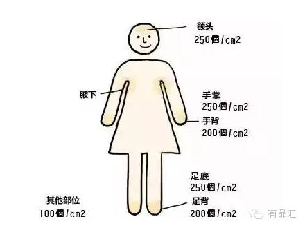 不同部位的汗腺密度不同