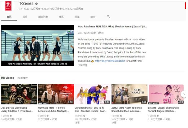 2018年3月,一直居于YouTube订阅数榜首的PewDiePie正式被印度影音公司“T-Series”超越。