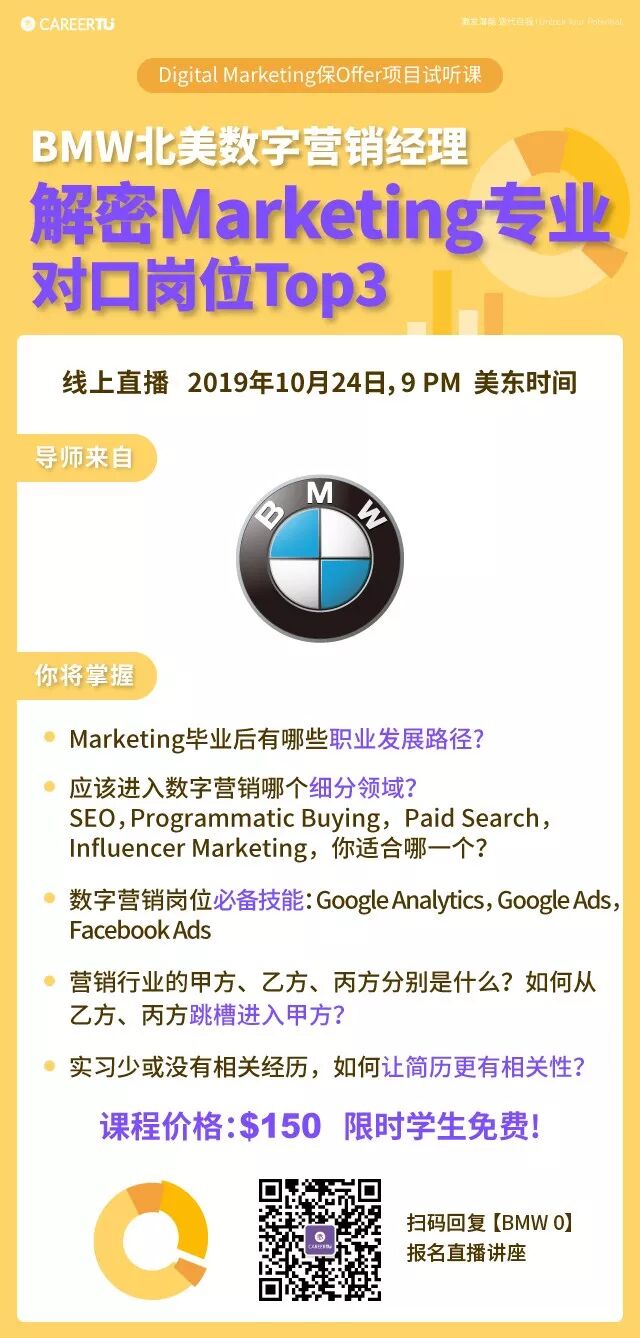 想了解当下最火热的营销?赶紧来了听听来自BMW的数字营销经理分享的:Marketing专业的职业发展路径。