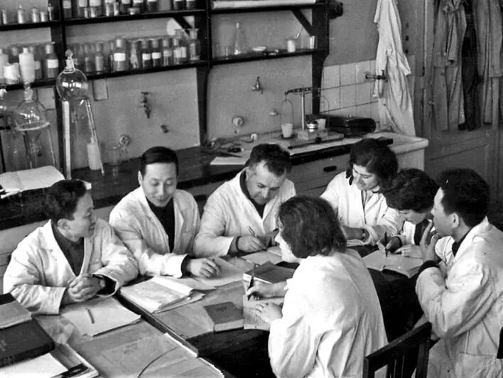 20世纪60年代,山仑参加阿尔巴尼亚农业实验室援建项目(左二)。资料照片