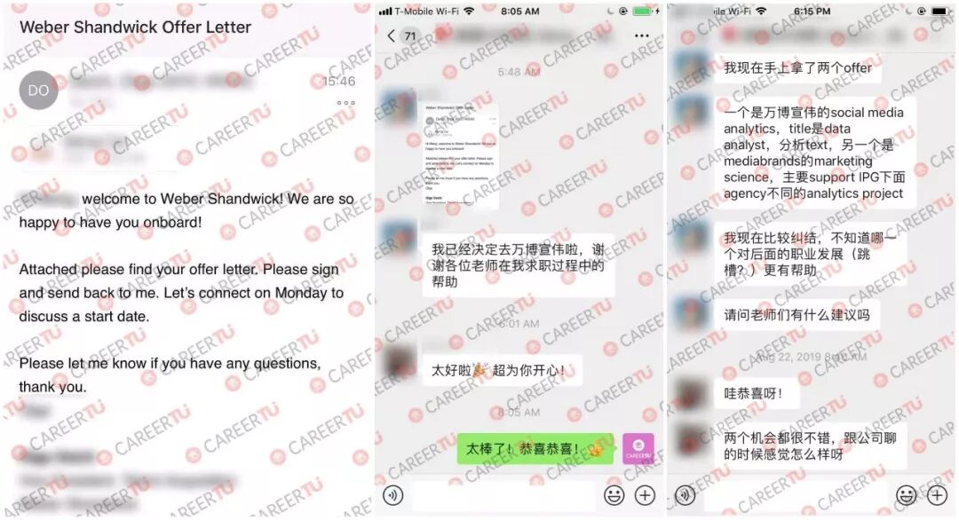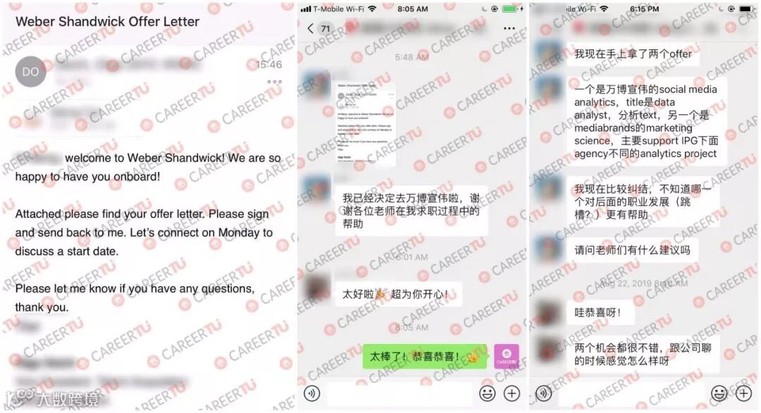 恭喜职图就读于University of Rochester的M学员经过自己的不懈努力后斩获Weber Shandwick的Data Analyst Offer!M学员研究生专业为Marketing Analytics,加上对数据的热爱,因此选择了Data Analytics作为她的求职方向!