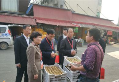 参会人员一行看望了湖南长沙红星水果批发市场周至好兄弟果业等周至猕猴桃销售人员,为销售人员鼓劲加油。红星市场的水果销往湖南各大城市,贵州等省市,满足市场对周至猕猴桃的需求。(记者 张晓强)