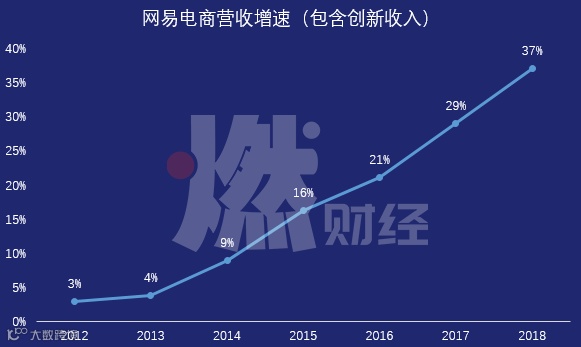 体现在财报上,包含电商的创新业务在网易总营收中的占比,从2014年的9%,一路增加至2018年的37%。而游戏收入的占比则进一步被压缩至60%。