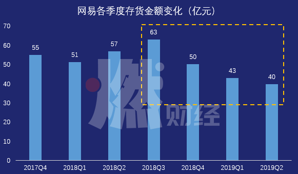 网易持续缩减库存的决心犹在。2019年Q2,网易存货金额为40亿元,达到历史最低。但随着网易电商规模的持续扩大,库存问题依然无法忽视。