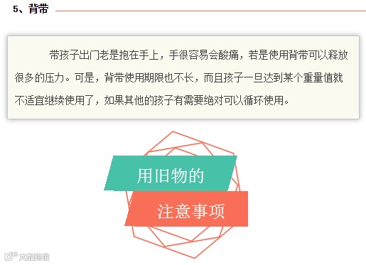 1、孩子使用旧物要了解清楚物品的来源,最好是亲朋戚友给的或者是自家孩子用过的,这样卫生方面比较放心。