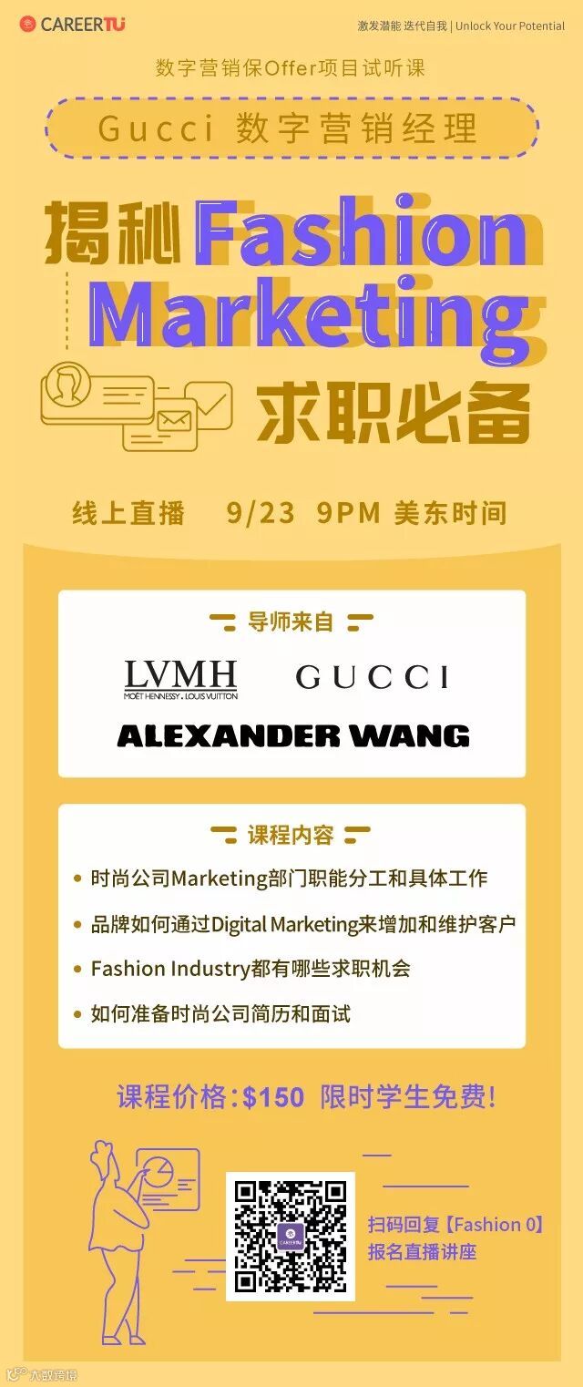 9月23号,来自Gucci的资深数字营销经理揭秘Fashion Marketing求职必备技能。