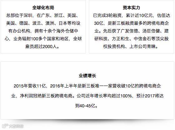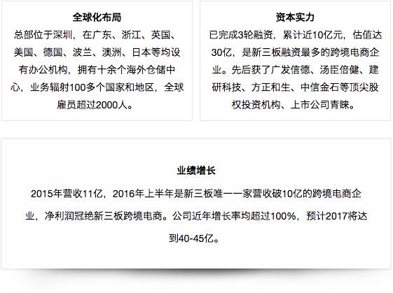 创立于2010年,是新三板挂牌企业中唯一一家覆盖进出口双向贸易的跨境电商企业(证券代码:836586),也是新三板盈利能力最强的跨境电商企业。