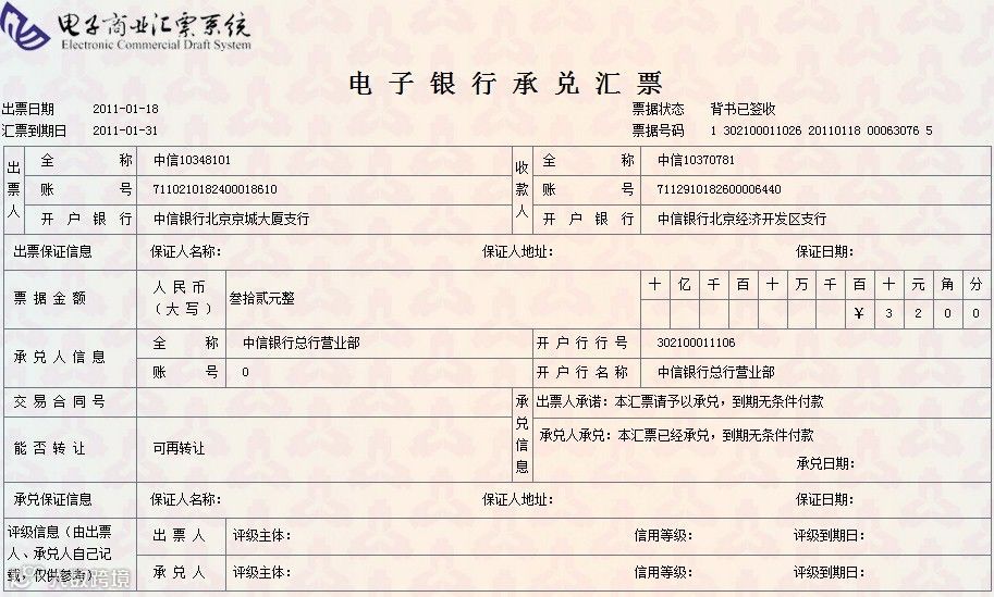 电子银行承兑汇票样图