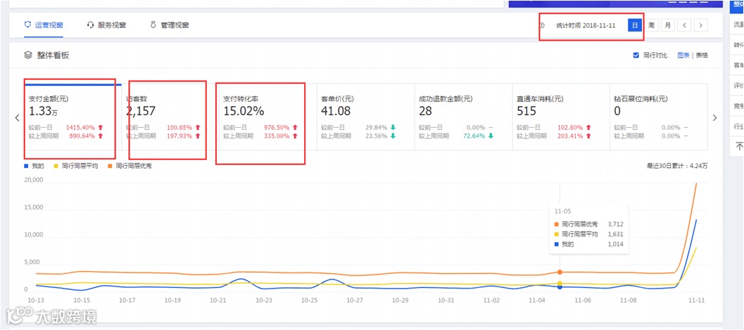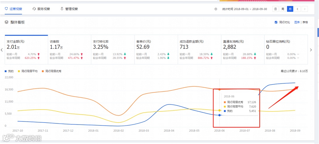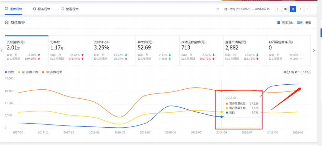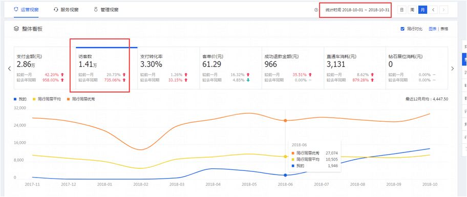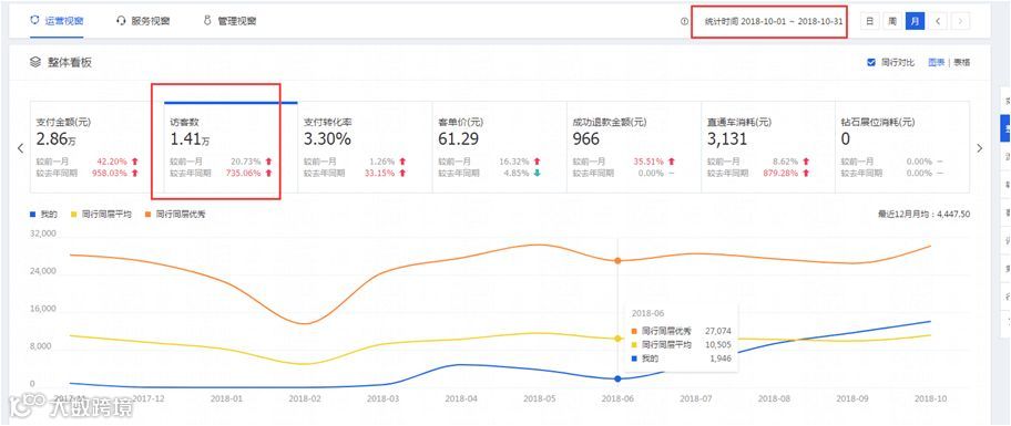 1. 在运营店长通过对店铺的诊断之后发现店铺的访客数和成交额都比同品类店铺要低很多;