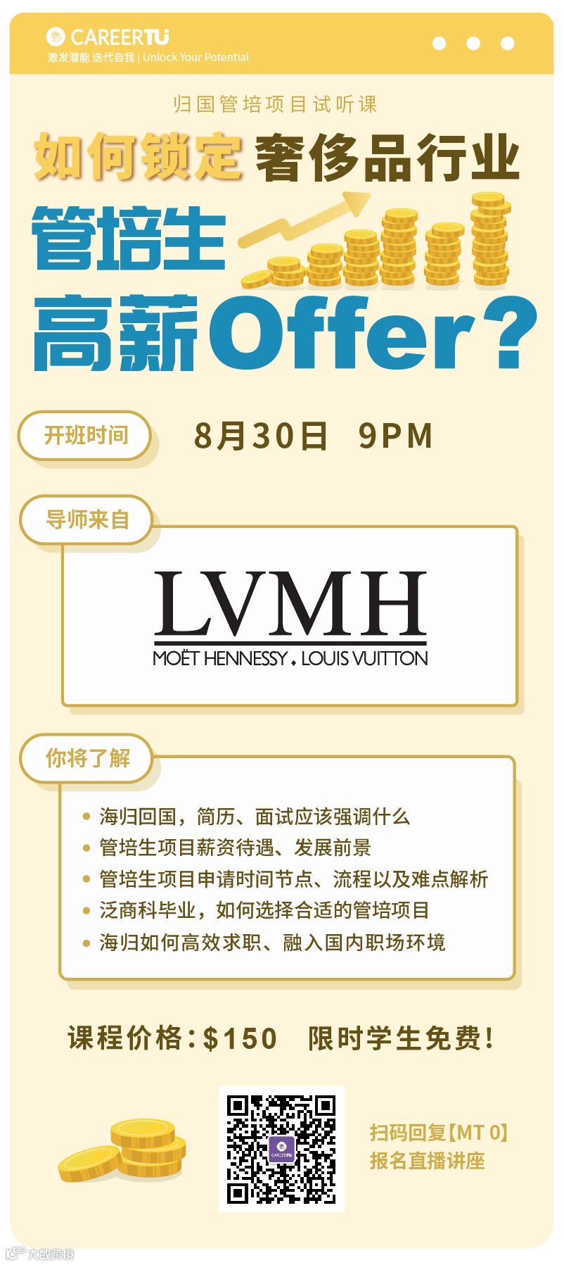 虽然美国 Trump 政府实施的一系列签证收紧政策,导致中国留学生在美国找工作的难度越来越大。但是这样看来,回国就业也还是有很多选择的嘛。因此职图推出归国管培项目。大家赶紧来了解一下免费试听课吧!