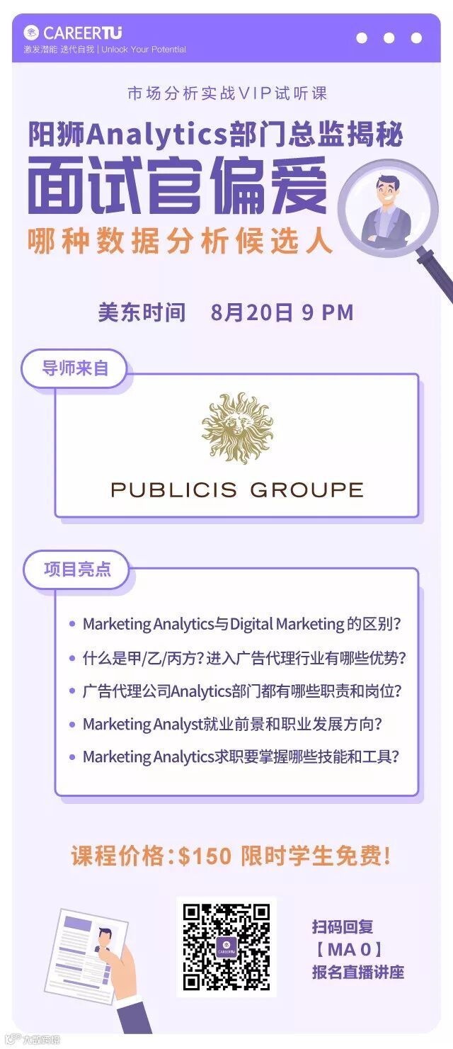 想要得到Facebook / Amazon /阳狮 Marketing Analytics经理手把手指导?