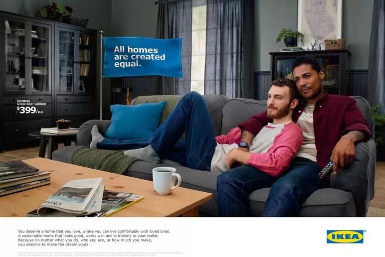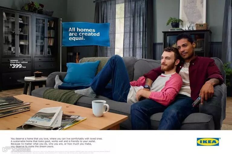 于是,不少品牌纷纷推出同性恋主题的广告,高露洁、Nordstrom、宜家还有金宝汤首当其冲,基情满满的广告里充满了浓浓的爱意。