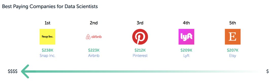 众所周知,旧金山有数不尽的科技公司,如科技巨头Google、Apple、Facebook、Uber、Airbnb、Dropbox、Pinterest、Salesforce等;而Microsoft、Amazon、Expedia、Zellow、Tableau等公司的总部则坐落在西雅图地区。但是你不会想到,最“舍得”给Data scientist 开工资的,竟然是这5家公司。