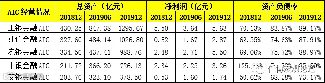 整体上来看,信托、基金与理财子公司等三类牌照的特征比较相似(也包括其它资管牌照),即以表外业务为主、资产负债率比较低。诸如保险、银行、消费金融、AMC、AIC、金融租赁等则以传统利差收入类业务为主,而券商则主要以经纪类业务、承销与发行类业务、财务顾问等为主。