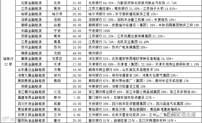 1、45家银行拥有金融租赁牌照:地方性银行合计32家、城商行22家
