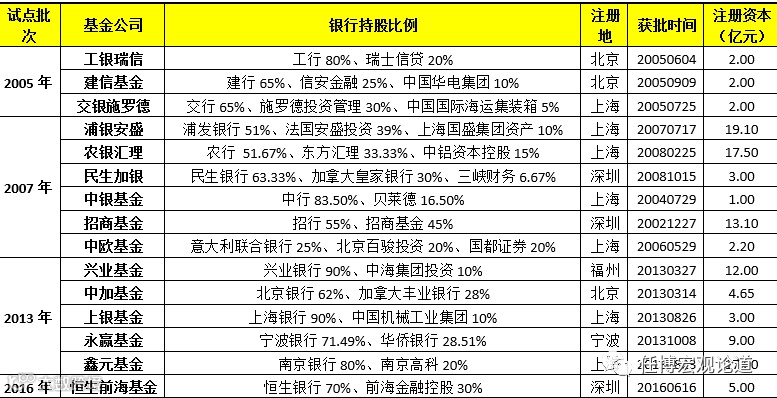 3、银行系基金公司(15家):国有大行5家、股份行4家、城商行4家