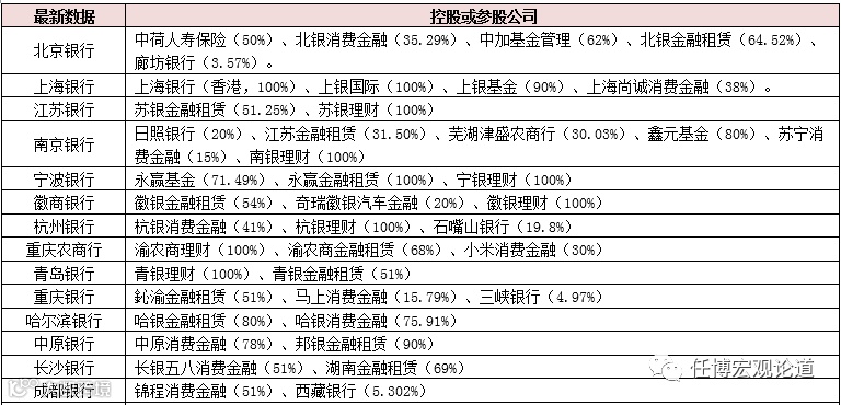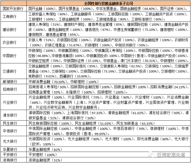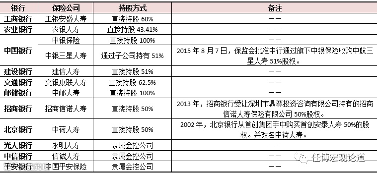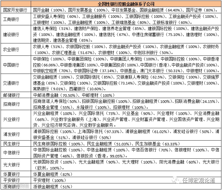 当然部分全国性银行还拥有不只一家保险公司,这里不再赘述。