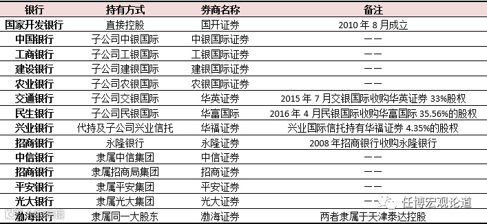 根据统计,目前共14家银行直接或间接拥有券商牌照,但也仅局限于全国性银行,地方性银行目前尚无一家拥有券商牌照。