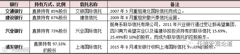 4、银行系信托公司(4家):2家国有大行、2家股份行