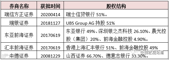 与此同时还5家券商为境外银行控股,分别为瑞信方正证券、瑞银证券、汇丰前海证券、东亚前海证券和中德证券。