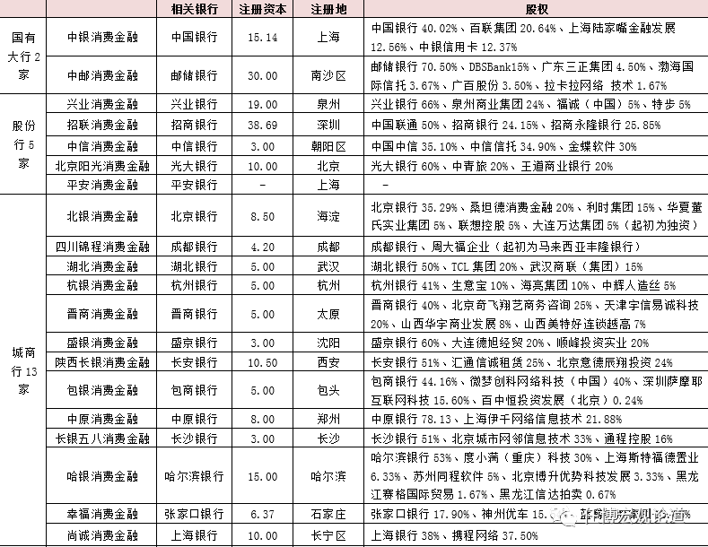 2、消费金融公司(24家):16家城商行拥有消费金融牌照