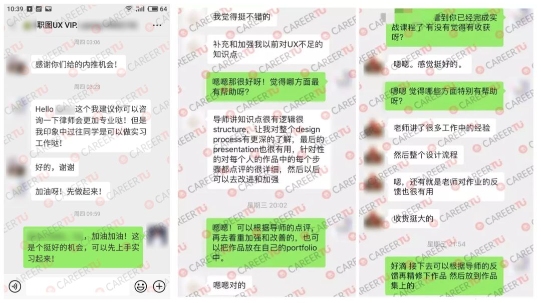 其次,在测试阶段,学校的项目,你得到的反馈只能局限在教授和同学之间,只能代表一部分敏感度比较高的群体的用户习惯,听不到真正的用户多样的反馈;但在职图的VIP项目中,职图导师因为在实际工作中,接触的用户群体更大,更加有Real-World的用户习惯全局观,你得到的项目反馈,也更加有业界视角。