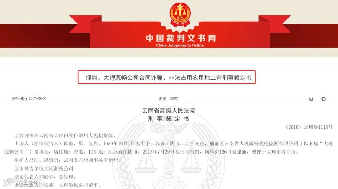 综合云南省高级人民法院于2017年5月11日作出的(2016)云刑终1115号《刑事裁定书》来看,仰某是当时港股上市公司中国源畅的实控人仰翱。