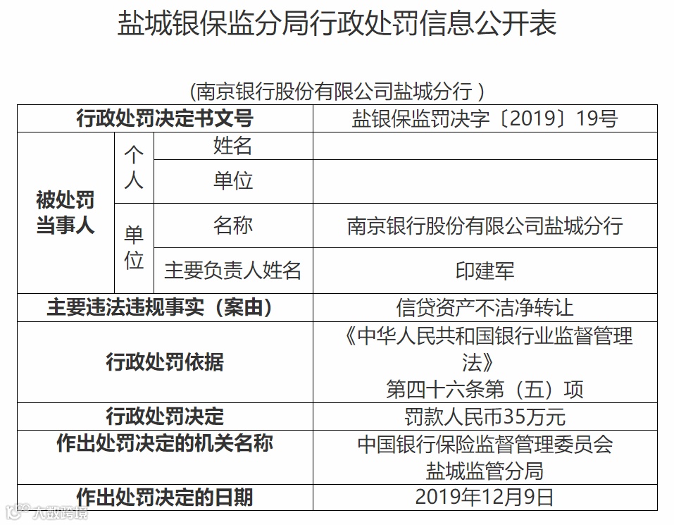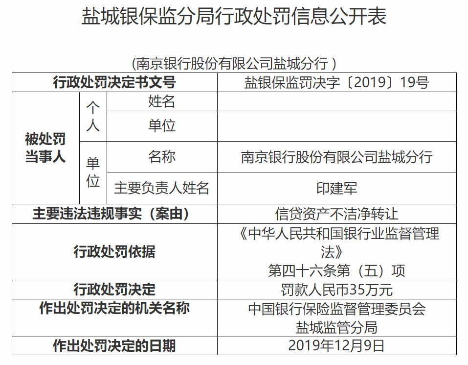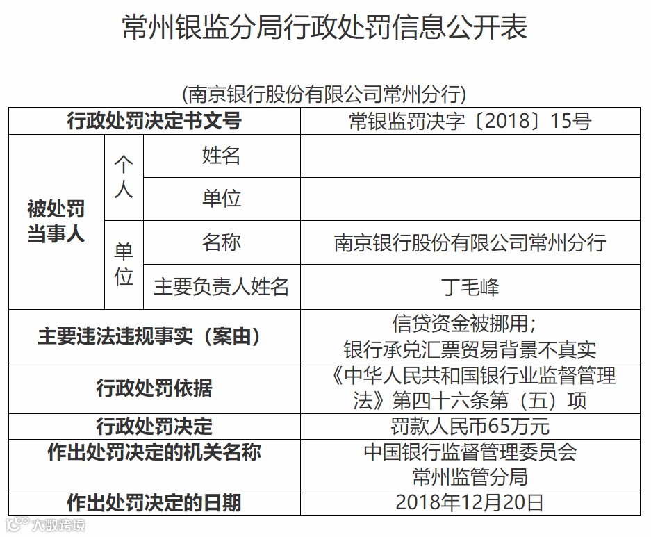 12张罚单涵盖了2018、2019两年,揭示了南京银行在票据和贷款以及出表方面的问题。
