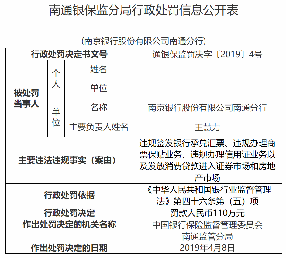 6月4日,据银保监会公告,南京银行一天之内连收12张罚单,其江苏省内分行几乎全部被罚,累计罚金高达658.75万元。而南京银行此次单天所领的罚单数量和罚没总额,更是一举超出了2019年全年的罚单数与累计罚金。其被罚原因主要涉及贷款业务、票据业务等多个方面。
