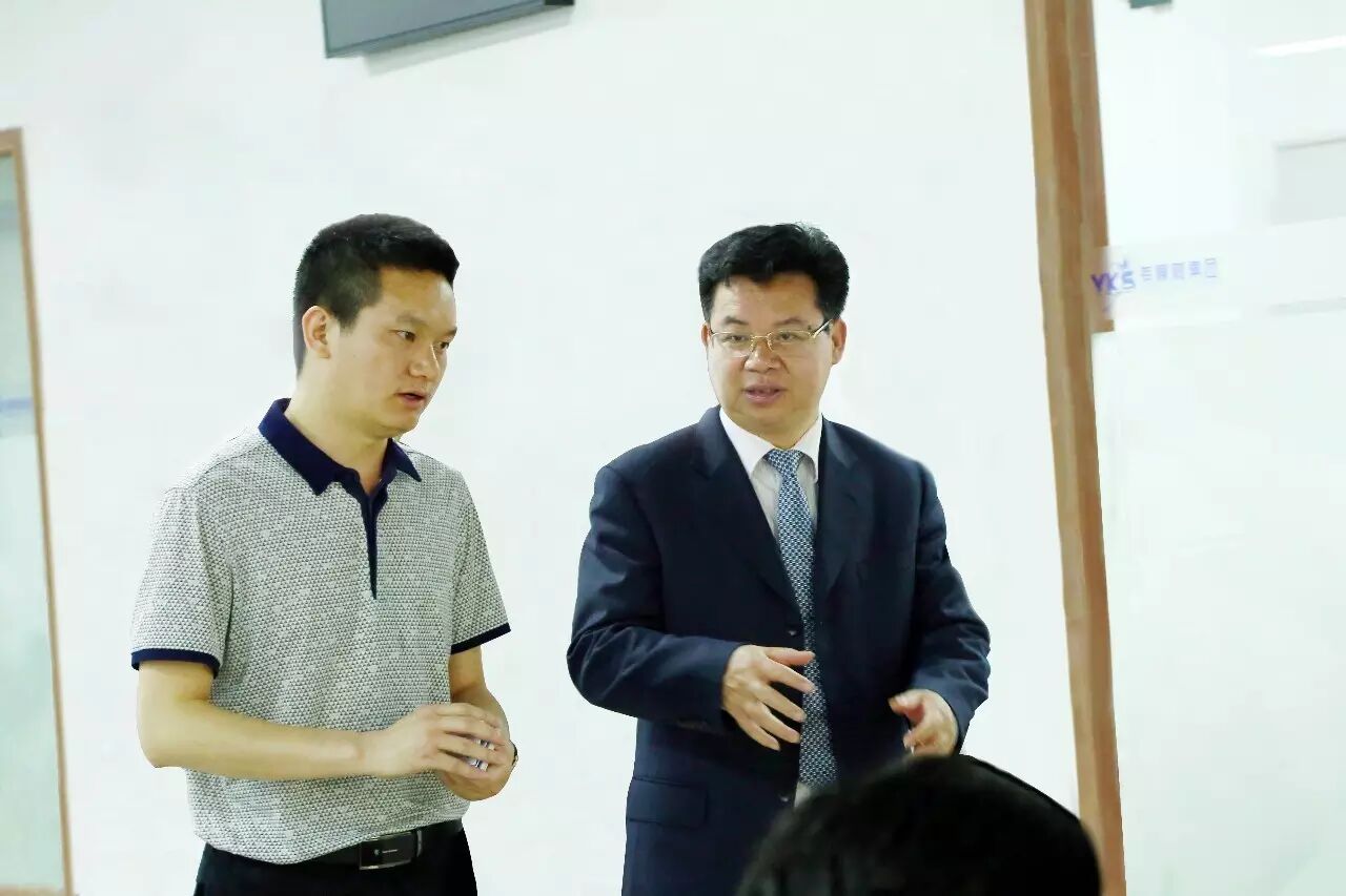 参观办公区,肖四清董事长为暨军民市长介绍集团运营情况