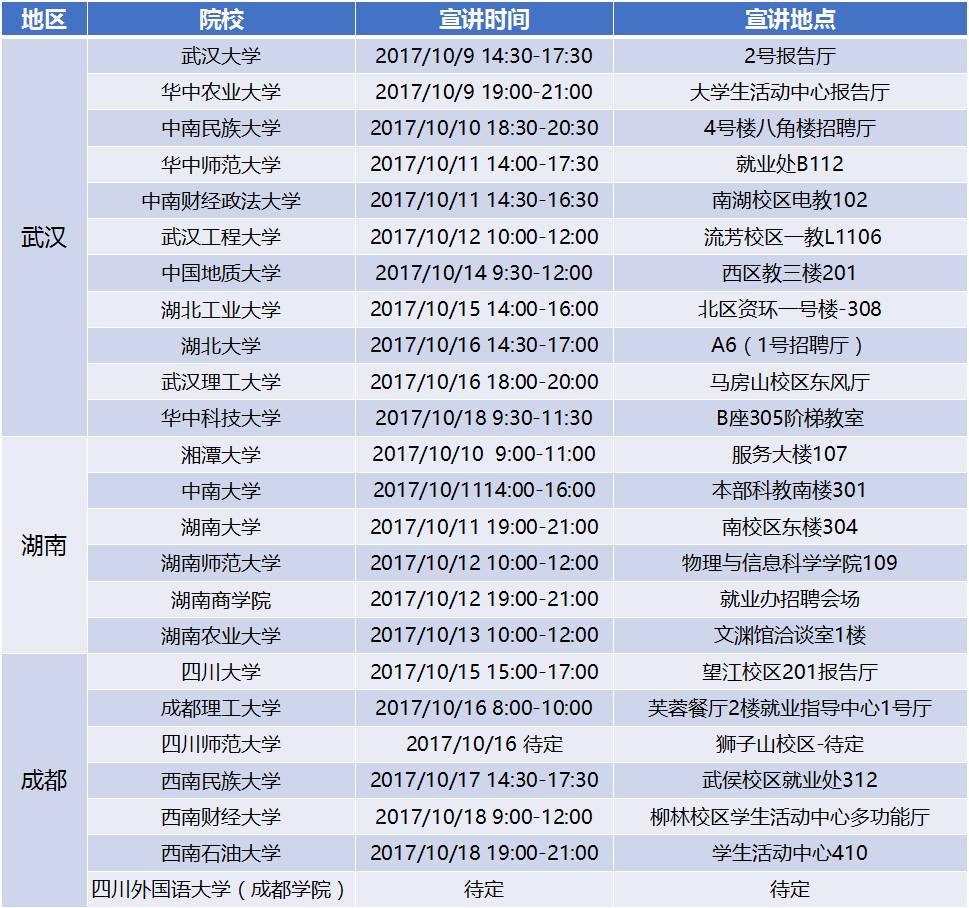10月,有棵树校招将走进武汉、长沙、广州,成都、哈尔滨、大连、长春等地的高校。届时,应届生可以通过参加宣讲会了解跨境电商行业,拓展自己的职业方向。