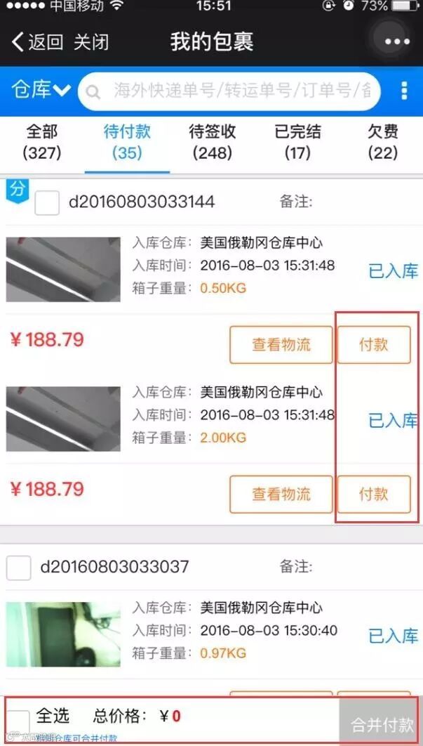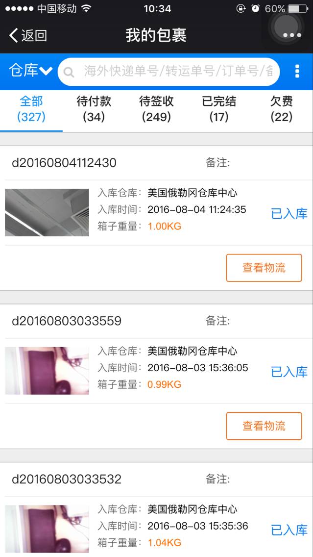 (以下截图属测试图片,非真实包裹数据)