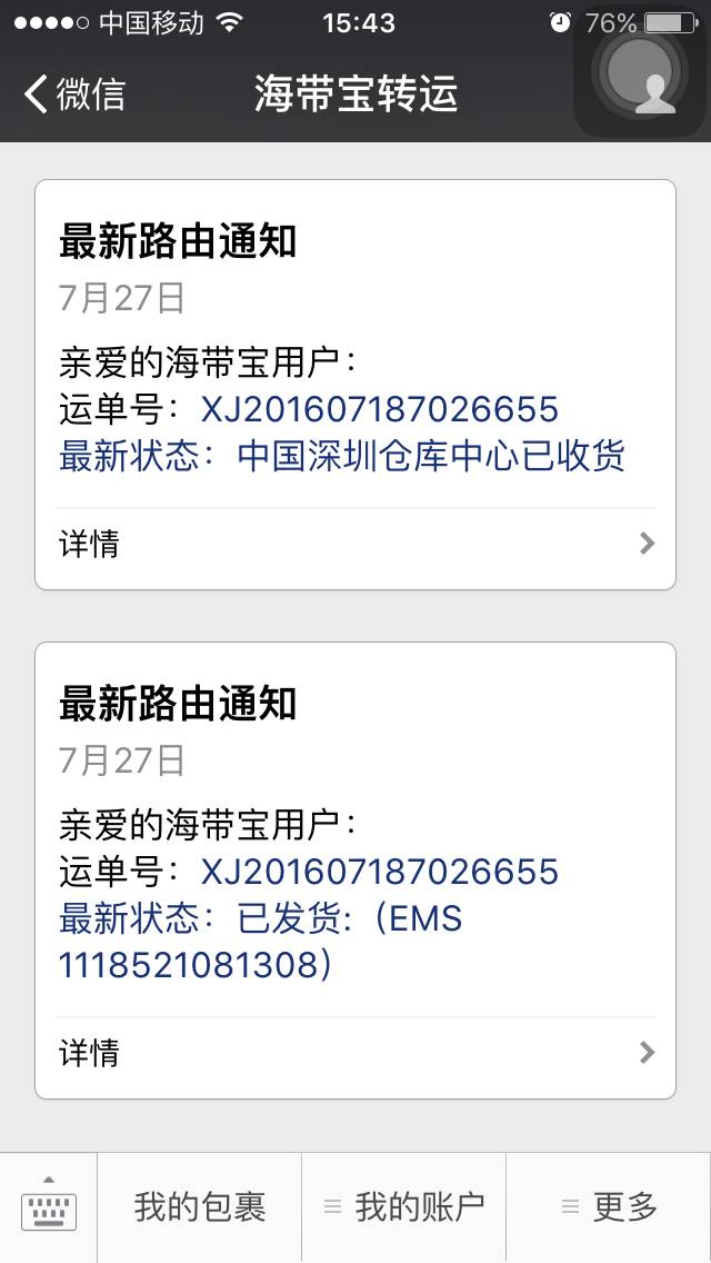 自动推送最新物流追踪信息
