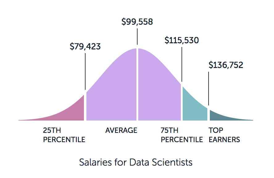 根据Paysa最近的工资数据,数据科学家每年平均收入都接近10万美元。