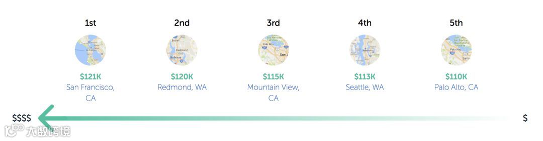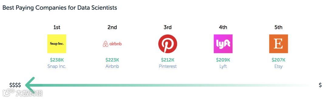 众所周知,旧金山有数不尽的科技公司,如科技巨头Google、Apple、Facebook、Uber、Airbnb、Dropbox、Pinterest、Salesforce等;而Microsoft、Amazon、Expedia、Zellow、Tableau等公司的总部则坐落在西雅图地区。但是你不会想到,最“舍得”给Data Scientist 开工资的,竟然是这5家公司。