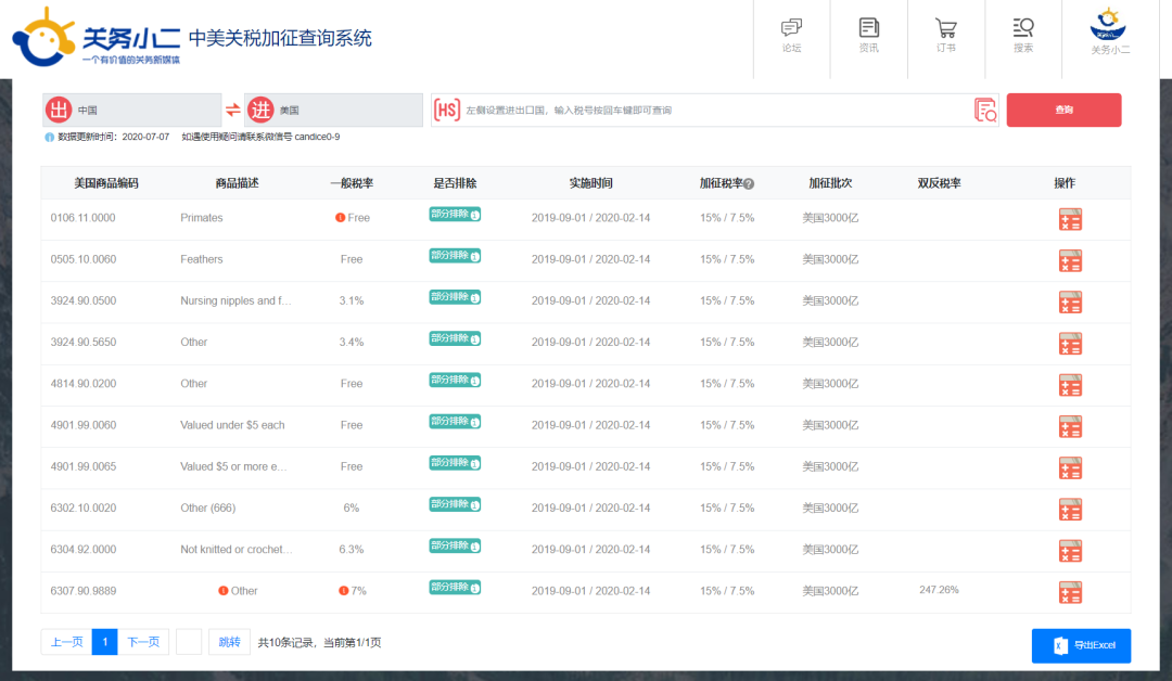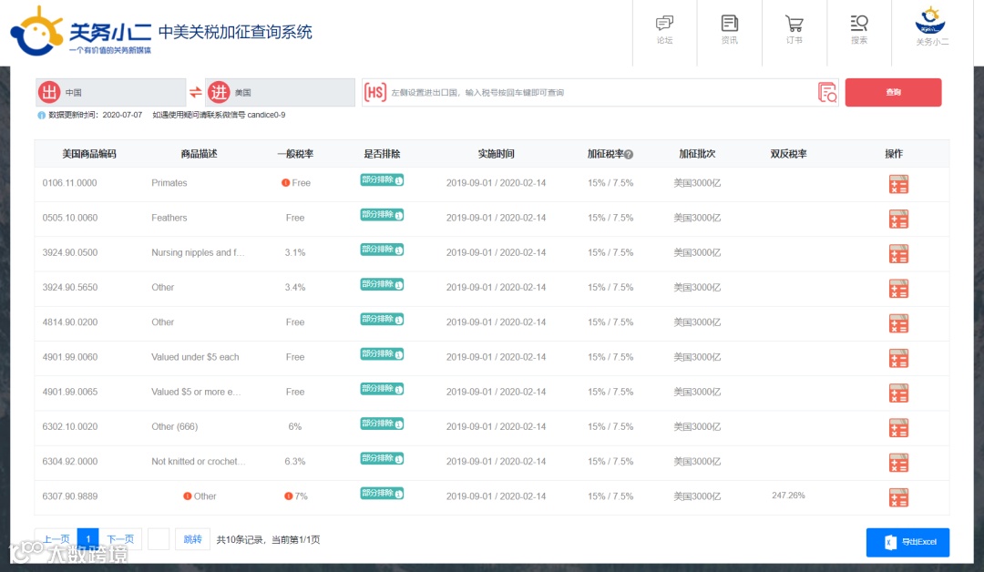 本次排除产品清单已同步至中美关税加征查询系统。