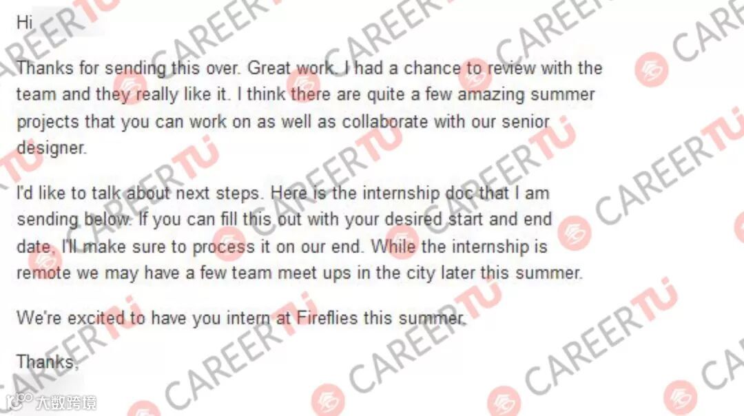 Y学员研究生专业为Fine Arts inDesign,所以一直以来的求职方向非常明确,为UIUX!Y学员加入职图项目后,职图为其匹配了在微软担任Designer II 的L导师进行一对一辅导。一直以来,L导师与Y学员都保持着很好的沟通与交流,积极解答学员的问题,帮助她精修作品集以及简历。同时,也通过跟导师的一对一模拟面试,逐渐提升了Y学员的面试技能,帮助Y学员最终顺利通过面试,成功拿下实习Offer!恭喜Y学员拿到心仪的Offer, 这是职业发展非常重要的开始。也祝愿Y学员在接下来的工作中能获得更多更好的发展!