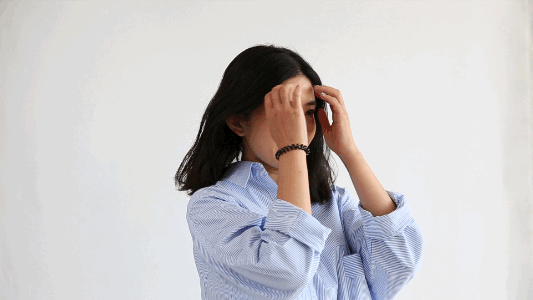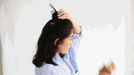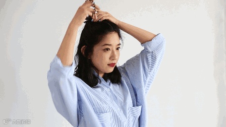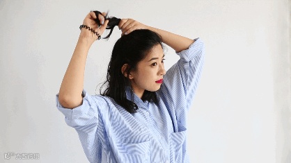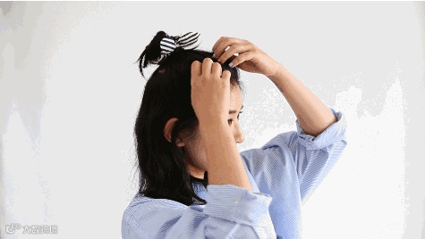 第三步:双手轻抓头顶的头发,绕到丸子上,制造一些自然的弧度。