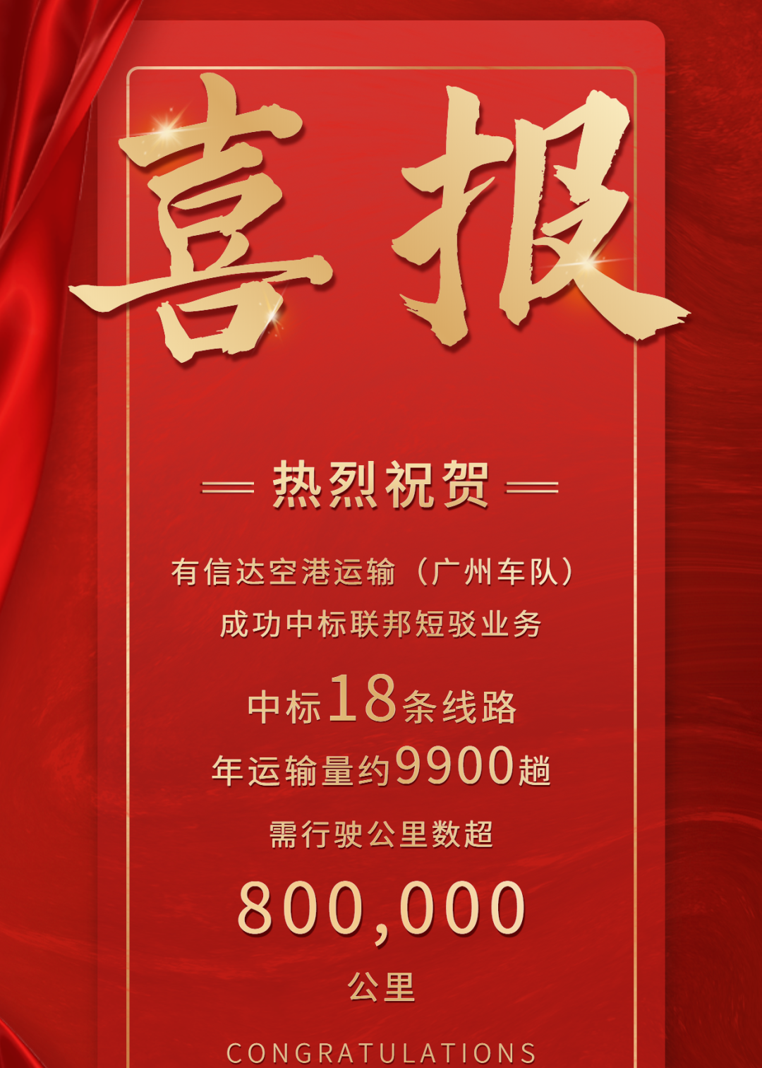 3月中旬,有信达空港运输(广州车队)成功中标联邦短驳业务18条线路,年运输量约9900趟,需行驶公里数超80万公里。