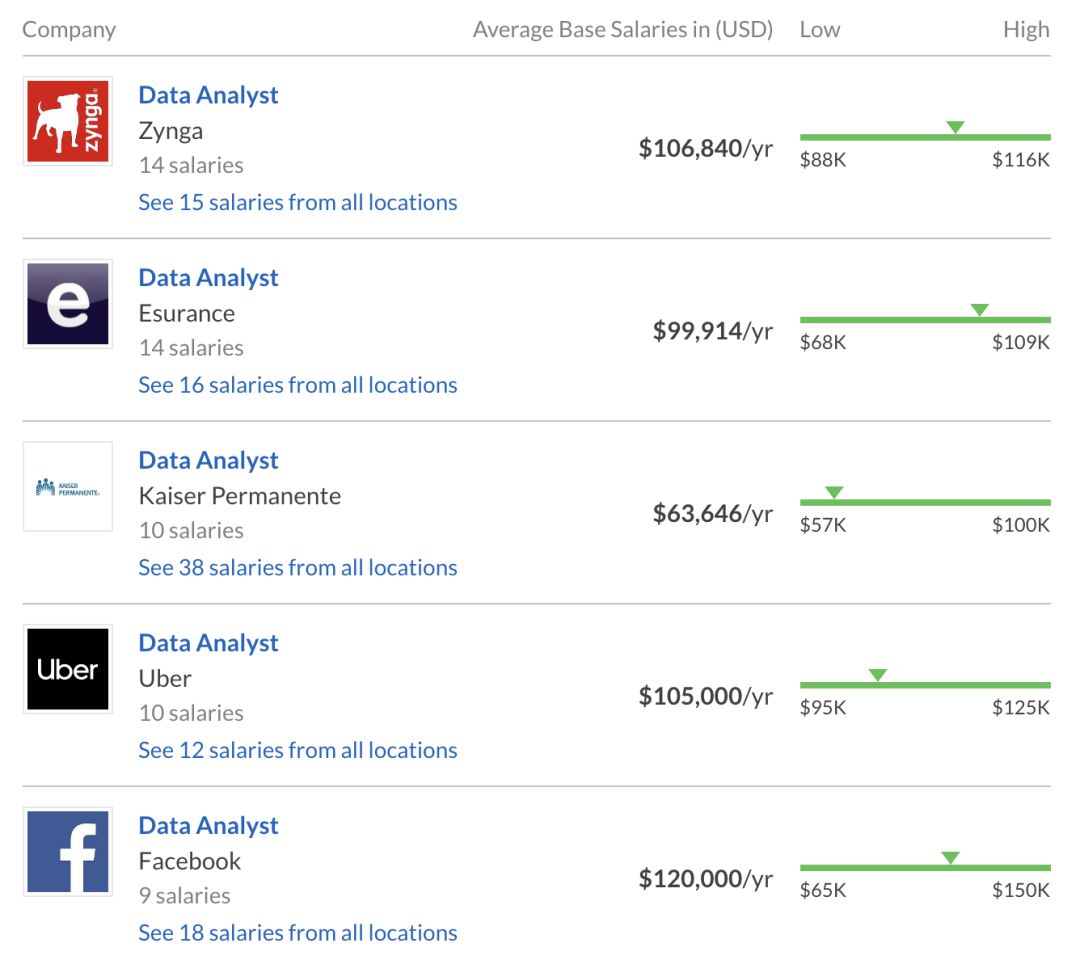 数据分析师SQL, Python, R这样的数据处理硬技能, 也需要对商业有好的理解, 在纽约和硅谷地区的平均薪资已经达到了10万美金/每年, 作为毕业后进入业界的第一份工作,是一个很好的选择。