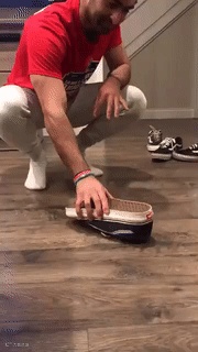 还有,这两位大兄dei,把他们的Vans轻轻按在地上两次,Vans都自己翻回来了。。。