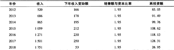 注意:第一年再投资额的计算是基于从第一年到第二年的收入变动额、并采用了1. 95的销售额与资本比率:
