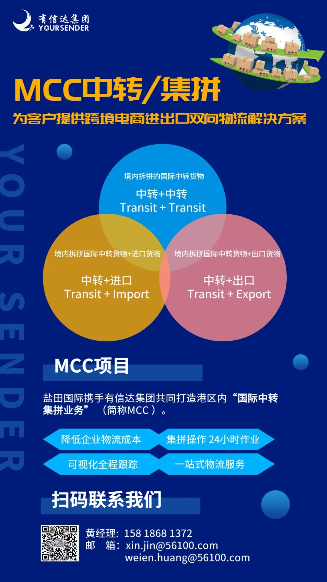 有信达与盐田国际合作,打造中国首家海港“国际中转集拼业务”(简称MCC )项目,实现码头内多功能集拼模式,海铁空过境集拼模式。双方将积极拓展MCC以降低企业物流成本,提高货物通关效率,打造智慧港口供应链服务,高效通关,减轻客户时间成本。