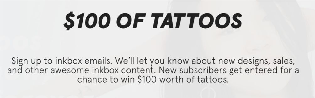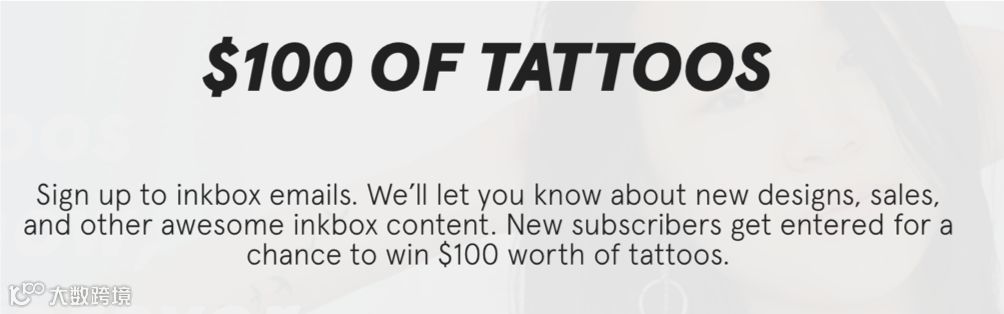 刚打开官网,网站就会让你用邮箱注册一个账号,并且有机会得到价值100美金的无痛纹身。