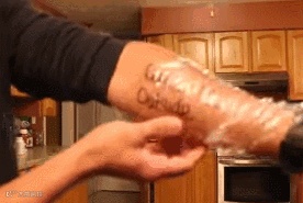 Inkbox的纹身贴就像不干胶一样,将一面的保护纸撕下来,把纹身贴贴在皮肤上,将棉布加热,盖在纹身贴上,过几分钟之后再把纹身贴撕下来,被贴过纹身贴的位置就会慢慢出现纹身啦。
