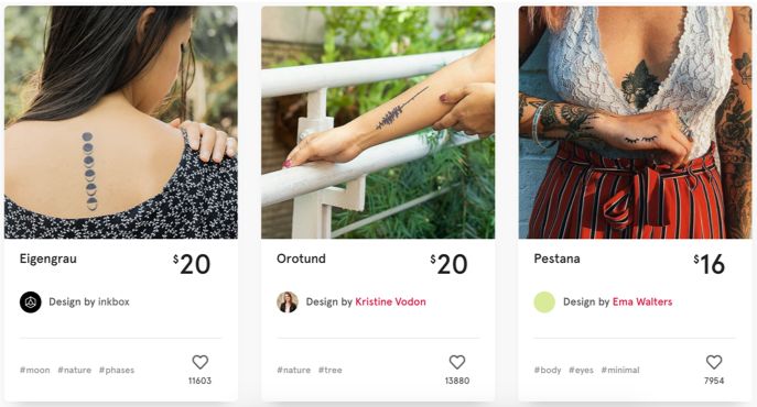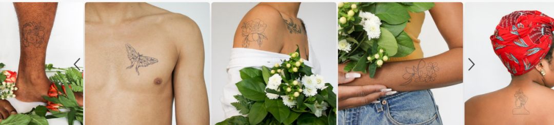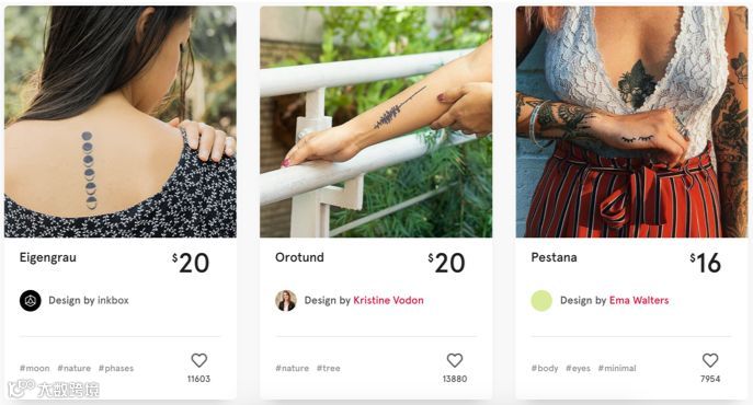 接下来,就可以在网站上欣赏各式各样的纹身图案,进行选择,有的是Inkbox自己设计的,也有来自其他设计师的投稿。