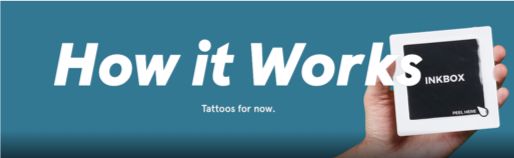 Inkbox使用了有机墨水合成物作为"假纹身"的材料,这种颜料能够渗入皮肤表皮,能够维持长达两周的时间。不过,这种有机墨水的合成物需要至少12个小时才能在皮肤组织中慢慢出现颜色,所以贴上去之后需要等一个晚上才能显现出来。刚撕下来的时候什么都看不出来,之后会慢慢从浅到深地出现颜色,形成图案。