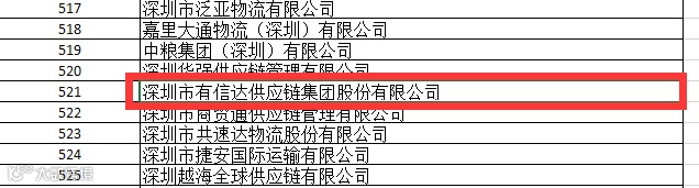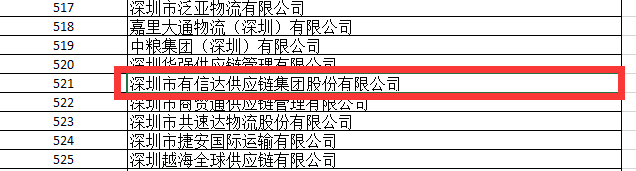 近日, 从深圳市经济贸易和信息化委员会获悉,深圳市有信达供应链集团股份有限公司入选深圳市便利直通车企业。
