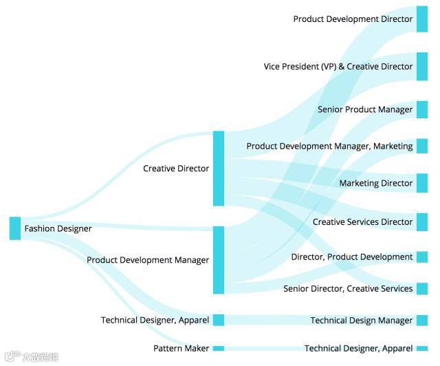 经典路径:Assistant Designer --> Associate Designer --> Designer --> Senior Designer --> Creative Director/VP of Design