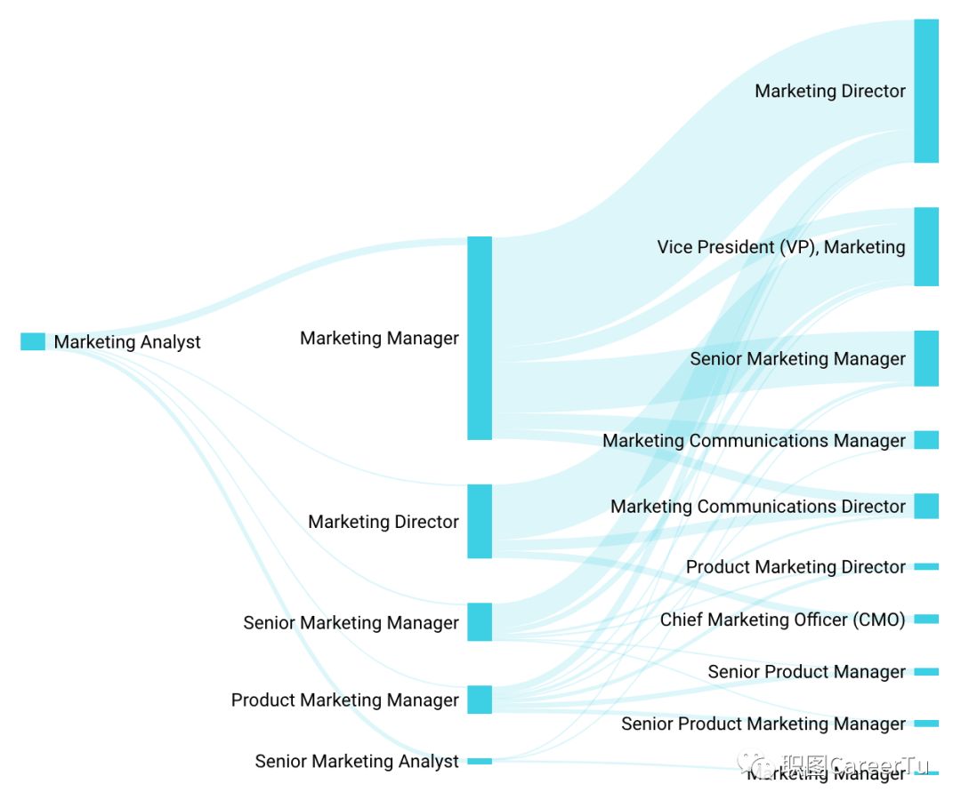 经典路径:Digital Marketing Spacilist --> Digital Marketing Manager --> Senior Digital Marketing Manager --> Marketing Director --> Marketing Vice President -->Chief Marketing Officer
